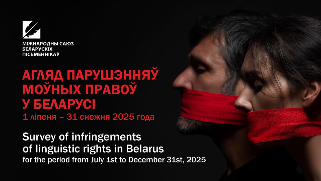 Асацыяцыя «Міжнародны саюз беларускіх пісьменнікаў» працягвае сачыць за станам беларускай мовы ў Беларусі і збіраць выпадкі дыскрымінацыі беларускай мовы і яе носьбітаў. Публікуем яе агляд парушэнняў моўных правоў у Беларусі за перыяд з 1 ліпеня па 31 снежня 2025 года.